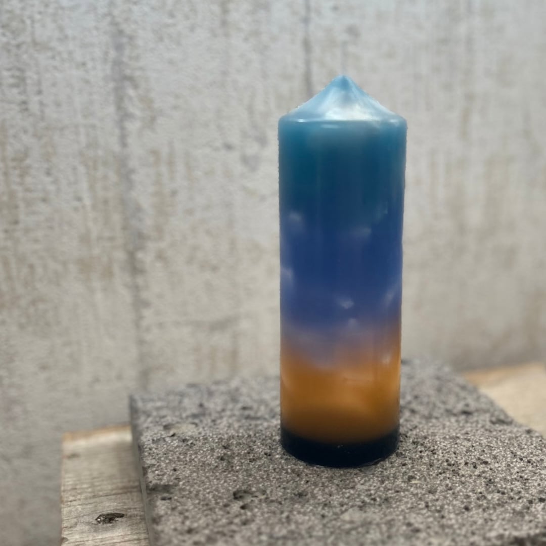 moon in the blue hourのブランドイメージである、海で眺めるブルーアワーを表現したキャンドルです。陽が沈み、空が濃紺に染まっていく様をグラデーションで表わしました。
