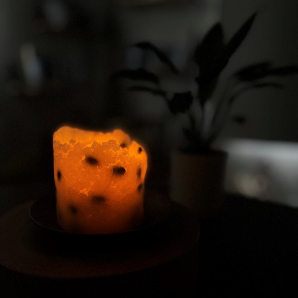 内側のソイワックス部分が溶けていくとランタンのように優しい明かりを灯すことができます。