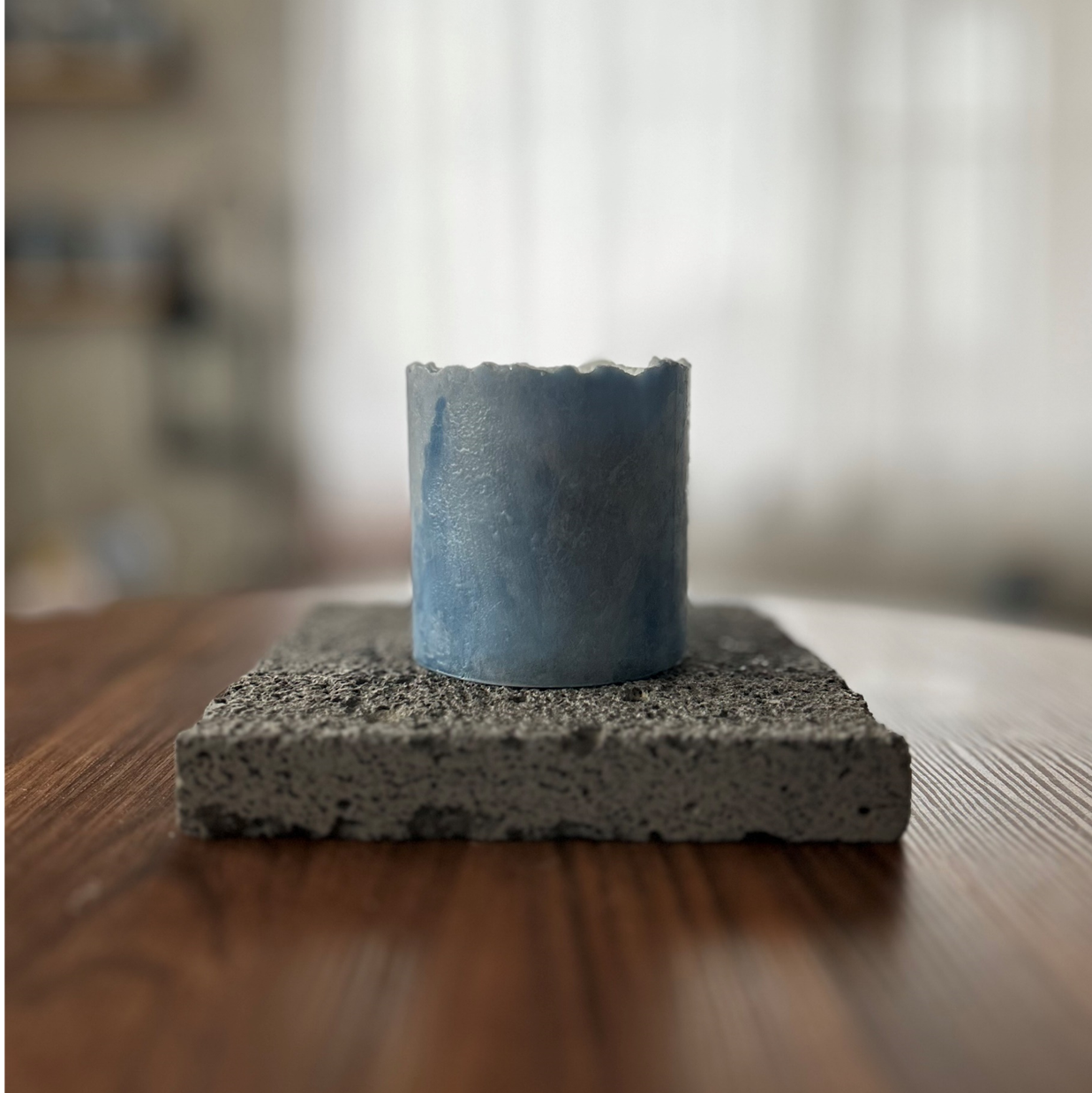 グレーとブルーが絶妙に重なり合い、火をともしたときに色が透けて鮮やかさが増してきます。ブルーは心身を落ち着かせ気持ちを和らげる効果がある色でもあり、よりキャンドルのリラックス効果を感じて頂けます。