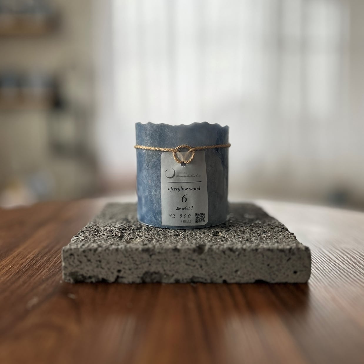 moon in the blue hourのテーマカラーであるgrayblueを基調としたキャンドル。