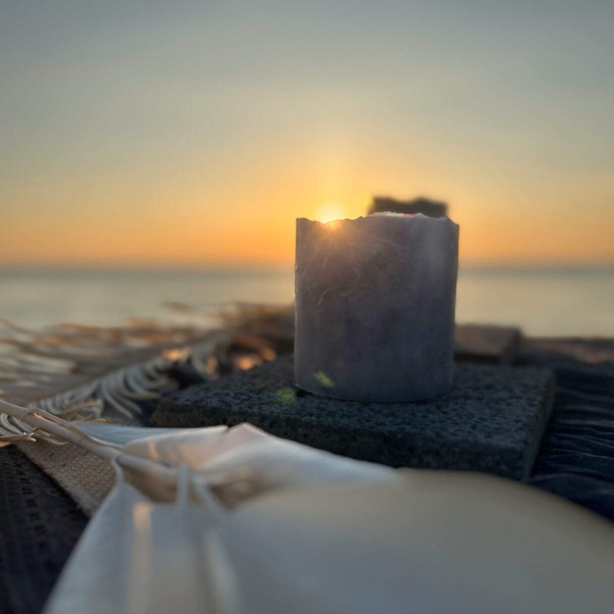 moon in the blue hourのテーマカラーであるgrayblueを基調としたキャンドル。